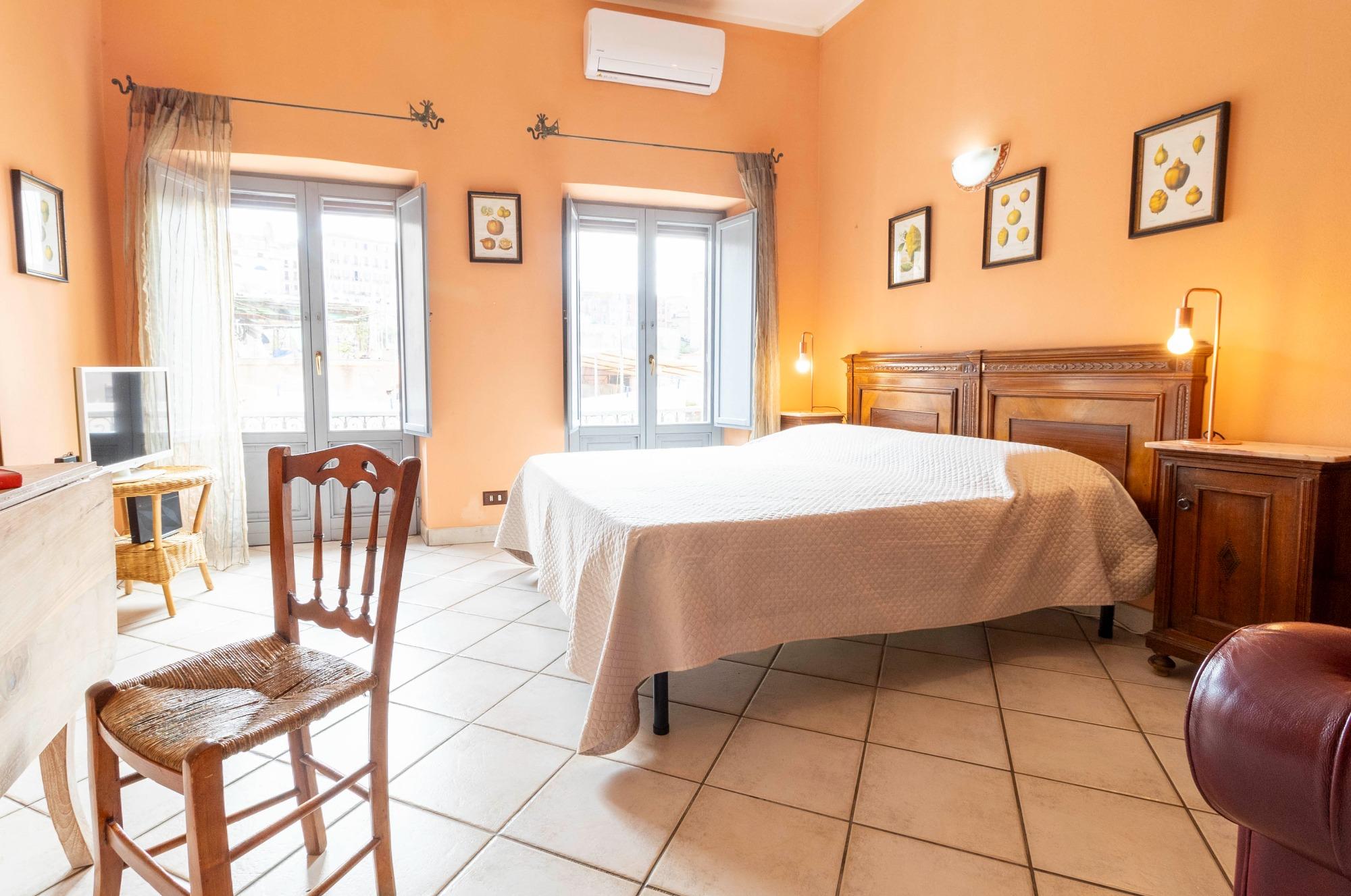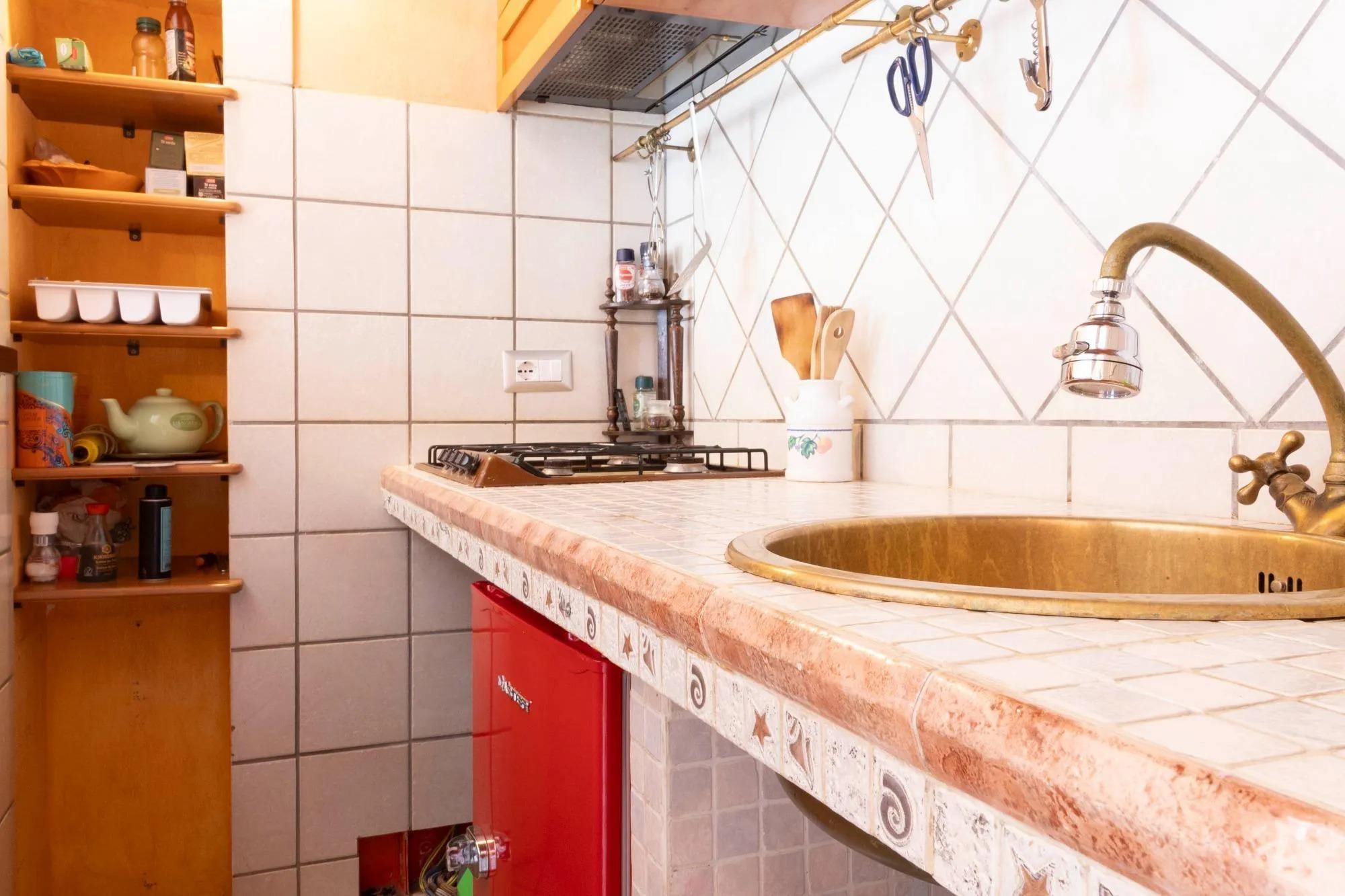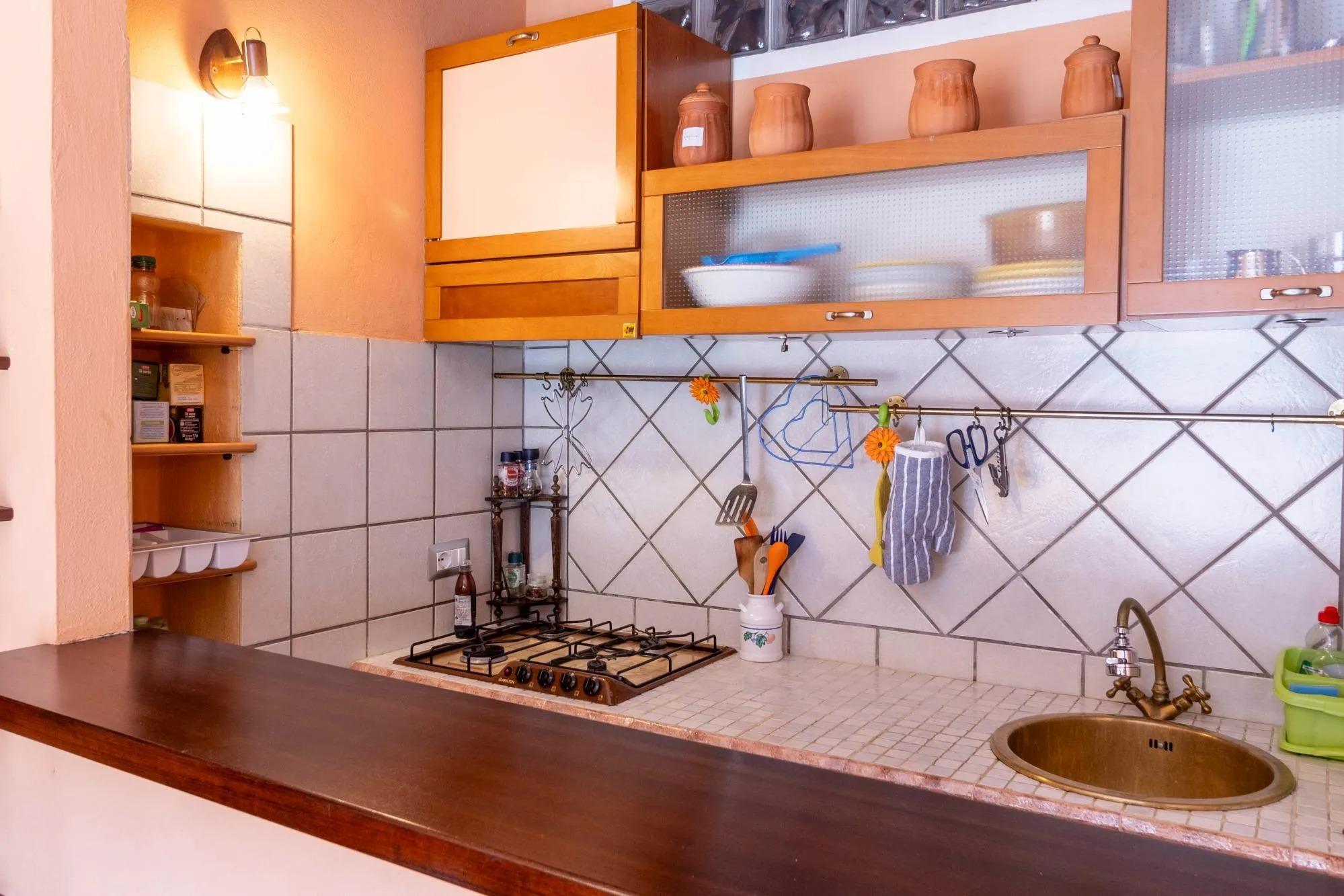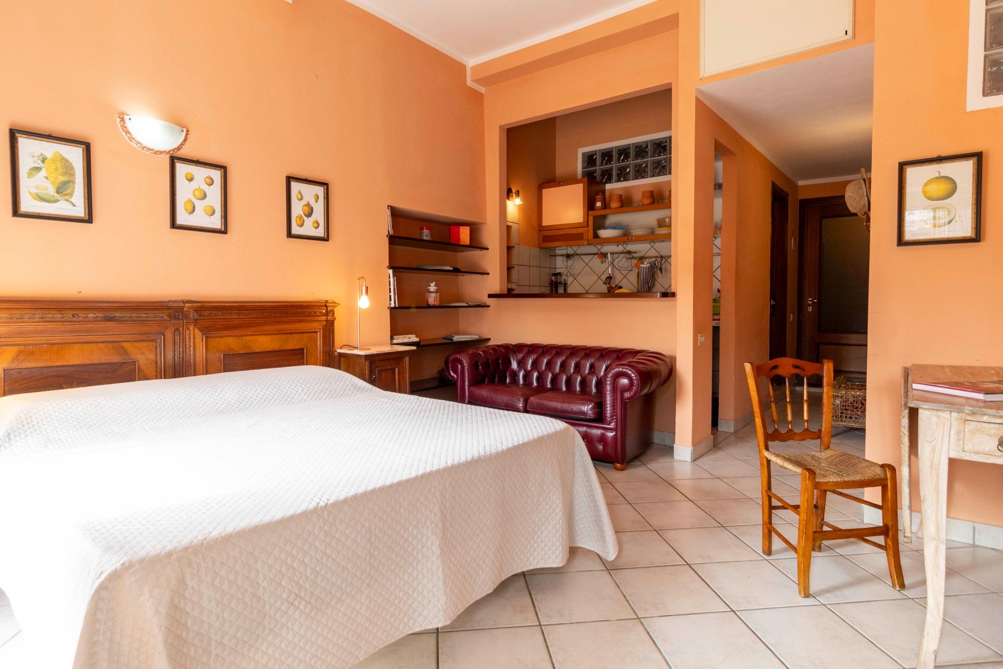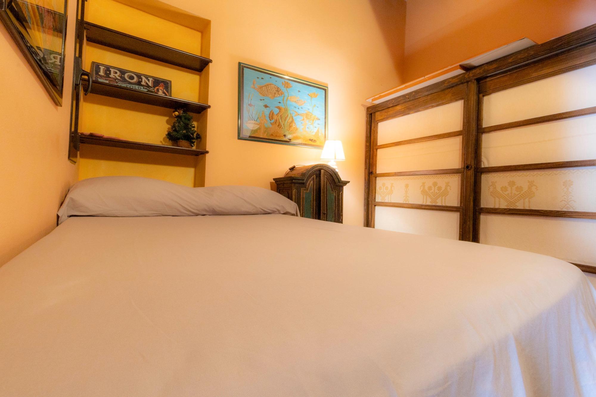 L’alloggio è ideale per una persona sola o per una coppia, anche con un bambino. Gli spazi, raccolti ma ben organizzati, comprendono una camera da letto panoramica, un bagno privato con box doccia e una zona giorno con angolo cottura attrezzato. L’appartamento è termocondizionato, dotato di Wi-Fi gratuito, TV a schermo piatto, lenzuola e asciugamani. Su richiesta è possibile aggiungere una culla o un letto singolo. I due balconcini regalano una piacevole vista sui tetti della città e sul quartiere di Castello, che si raggiunge con una breve passeggiata, e permettono di scorgere anche il mare di Cagliari.
